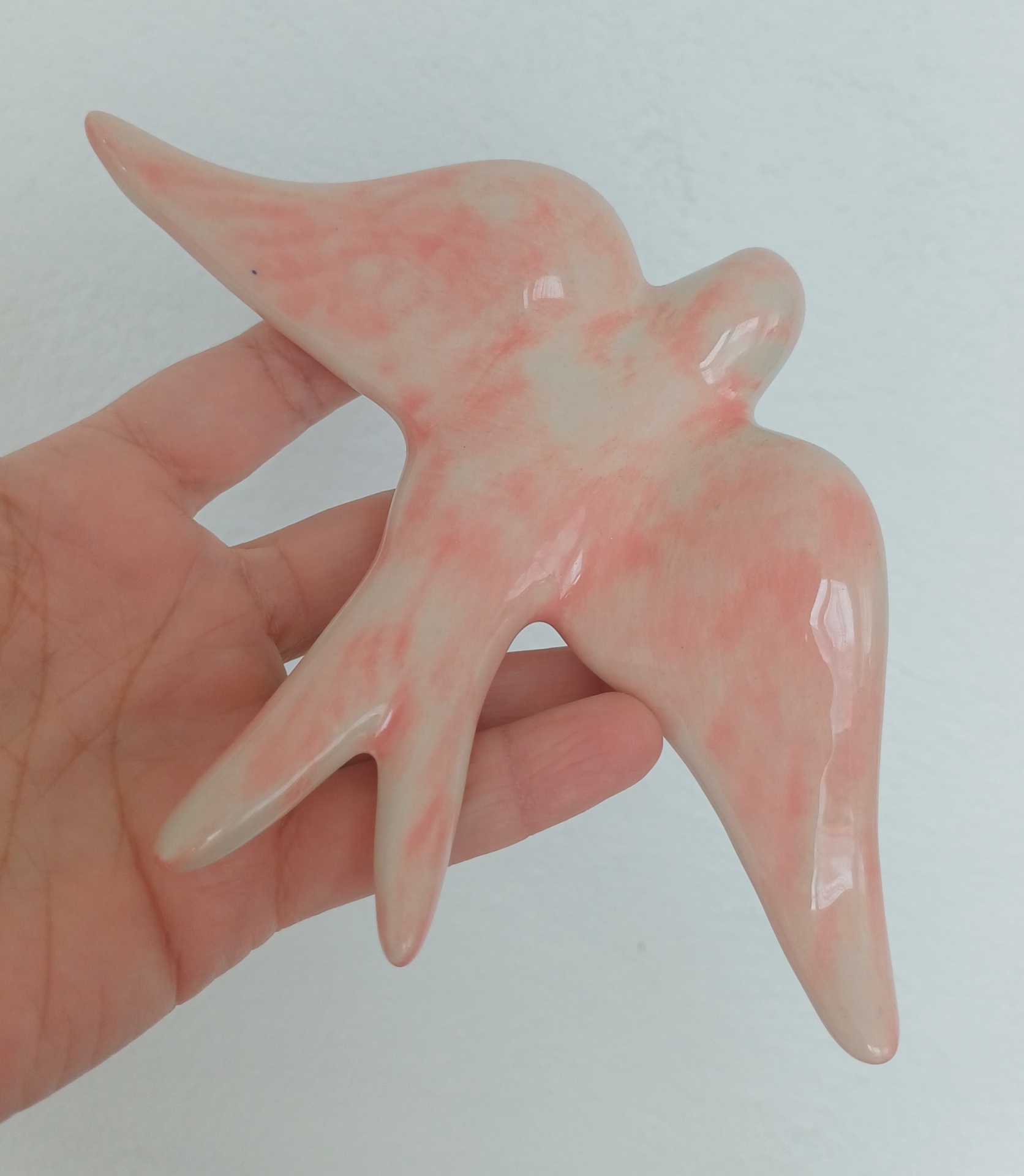 Andorinha Grande 8,50 € Desconto de %. Partilhar Cor Cinza Vermelho Branco Mesclado Rosa Comprar Contactar Disponível para entrega imediata e enviado em até 2 dias úteis após a encomenda. Características: 100% Feito à Mão. Material: Grés com vidrado apropriado para interior ou exterior. Categoria: Decorativo. Cores: Disponível em várias cores. Andorinha Grande: Largura Aprox. 16cm / Comprimento Aprox. 11,5cm