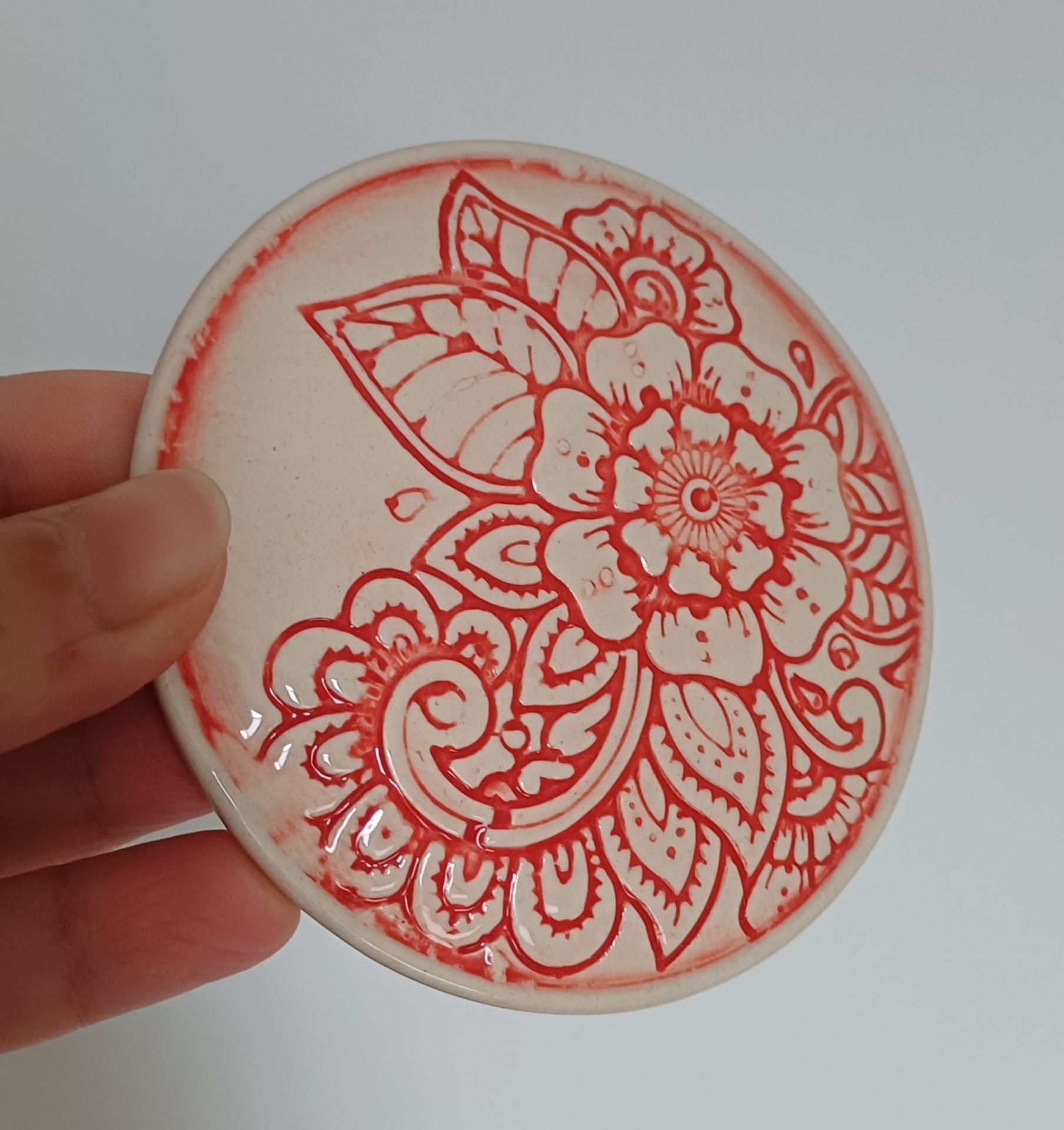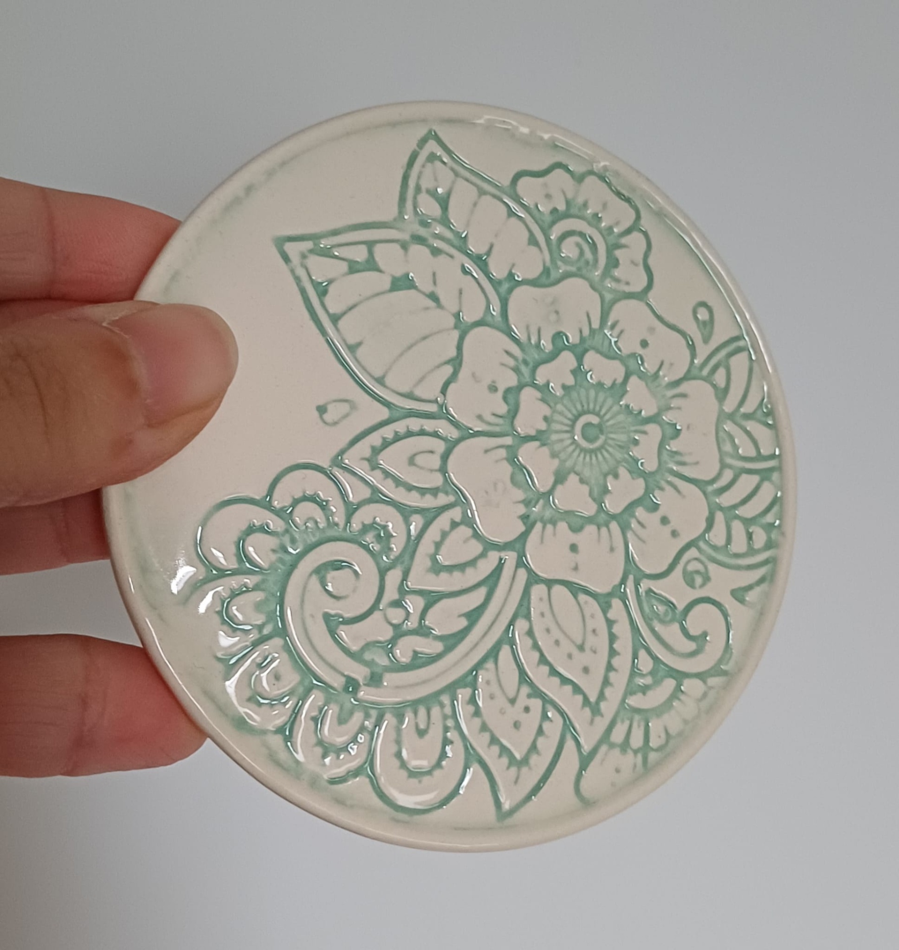 Base de Copos 5,00 € Desconto de %. Partilhar Modelo / Cor Mandala / Vermelho Floral / Rosa Floral / Verde Água Floral / Verde Floral / Vermelho Comprar Contactar Disponível para entrega imediata e enviado em até 2 dias úteis após a encomenda. Características: 100% Feito à Mão. Material: Grés com vidrado apropriado para microondas e lava-loiça. Categoria: Utilitário. Cores: Disponível em várias cores. Altura Aprox. 0,5cm Diâmetro Aprox. 9,5cm