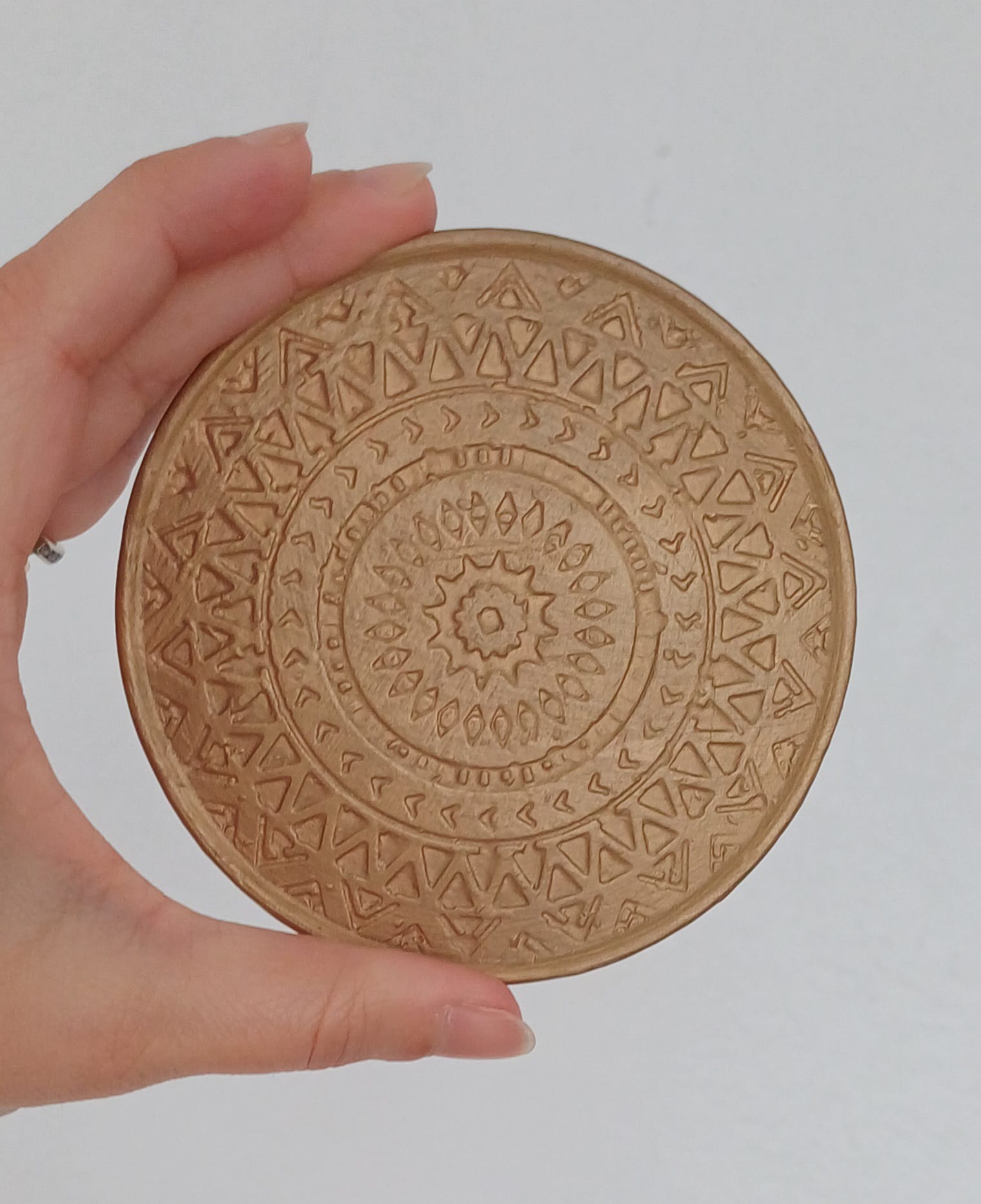 Base de Copos #2 5,00 € 7,30 € Desconto de 31.5%. Partilhar Cor Verde Vermelho Dourado Comprar Contactar Disponível para entrega imediata e enviado em até 2 dias úteis após a encomenda. Características: 100% Feito à Mão. Material: Grés pintado. Modo de Limpeza: Limpar com pano húmido. Categoria: Decorativo. Cores: Disponível em várias cores. Altura Aprox. 0,8cm Diâmetro Aprox. 9,5cm