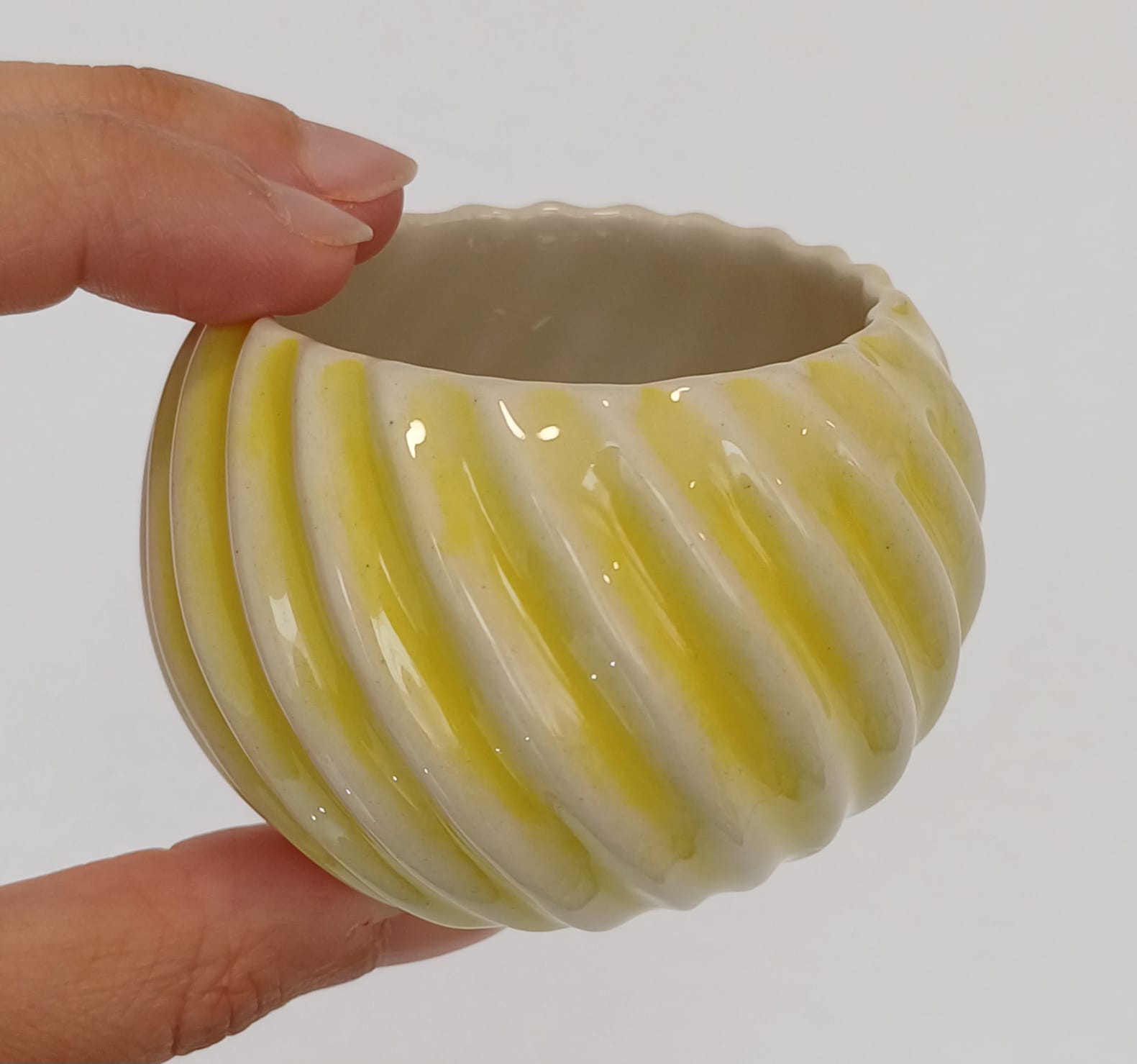 Copo Bola Pequena #6 8,00 € Desconto de %. Partilhar Cor Castanho Amarelo Comprar Contactar Disponível para entrega imediata e enviado em até 2 dias úteis após a encomenda. Características: 100% Feito à Mão. Material: Grés com vidrado apropriado para microondas e lava-loiça. Categoria: Utilitário. Cores: Disponível em várias cores. Altura Aprox. 5cm Diâmetro Aprox. 6,5cm