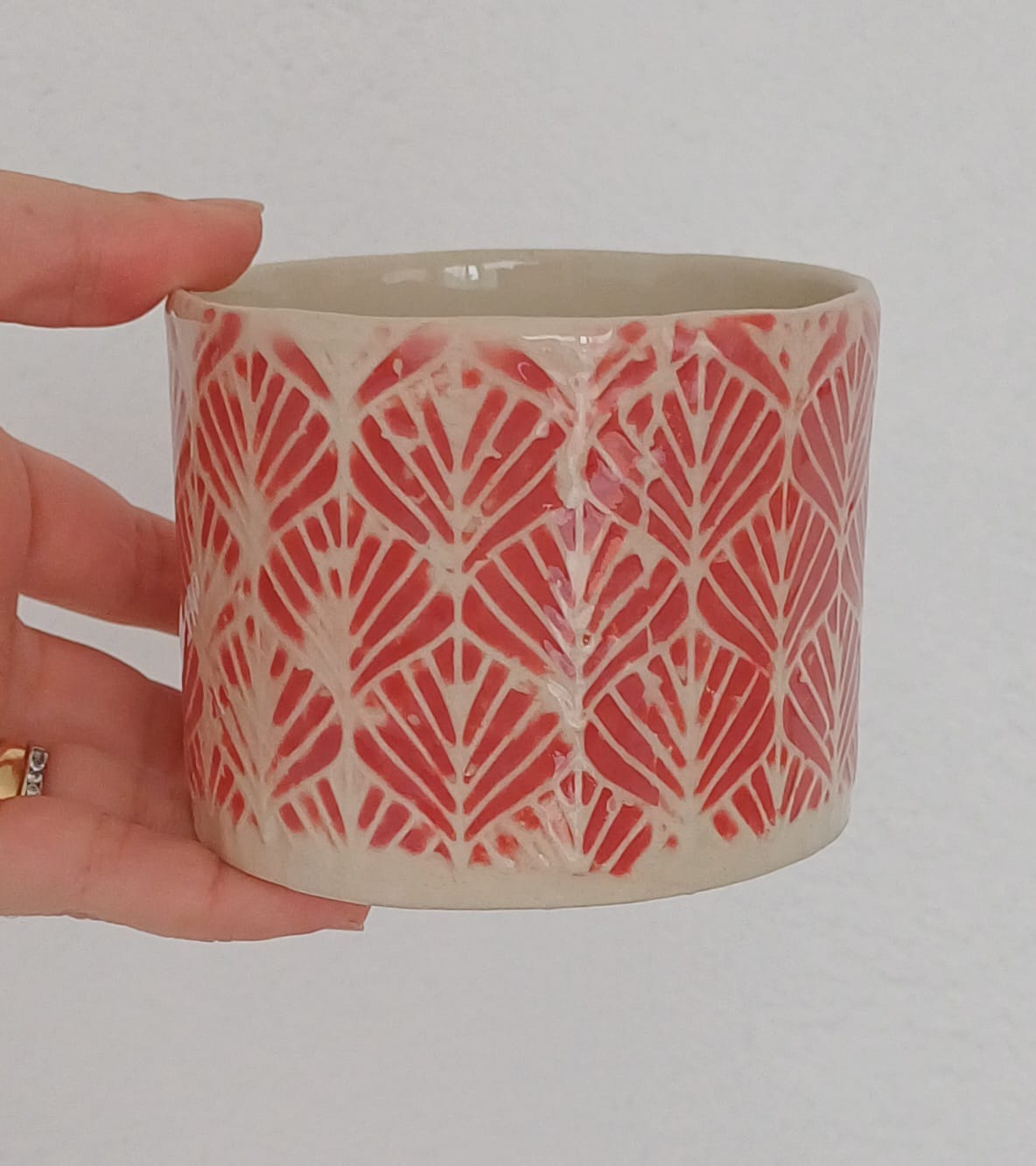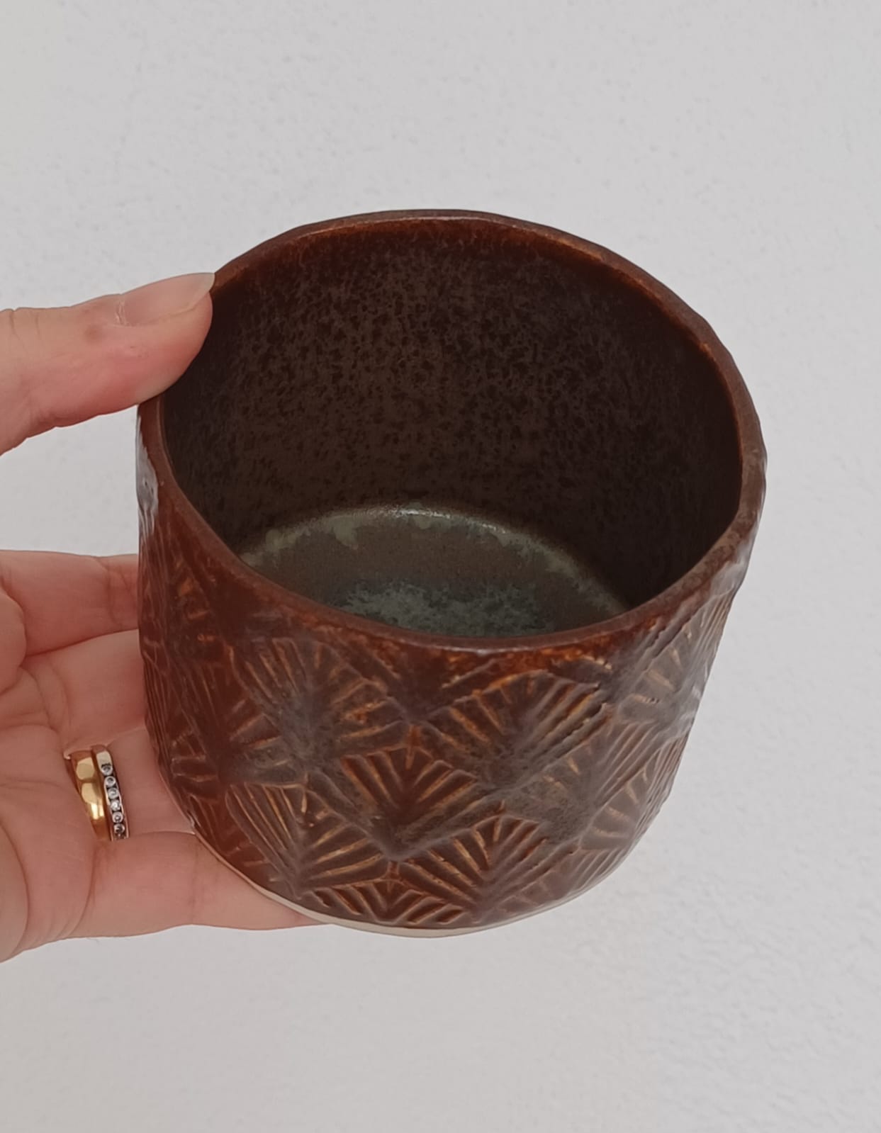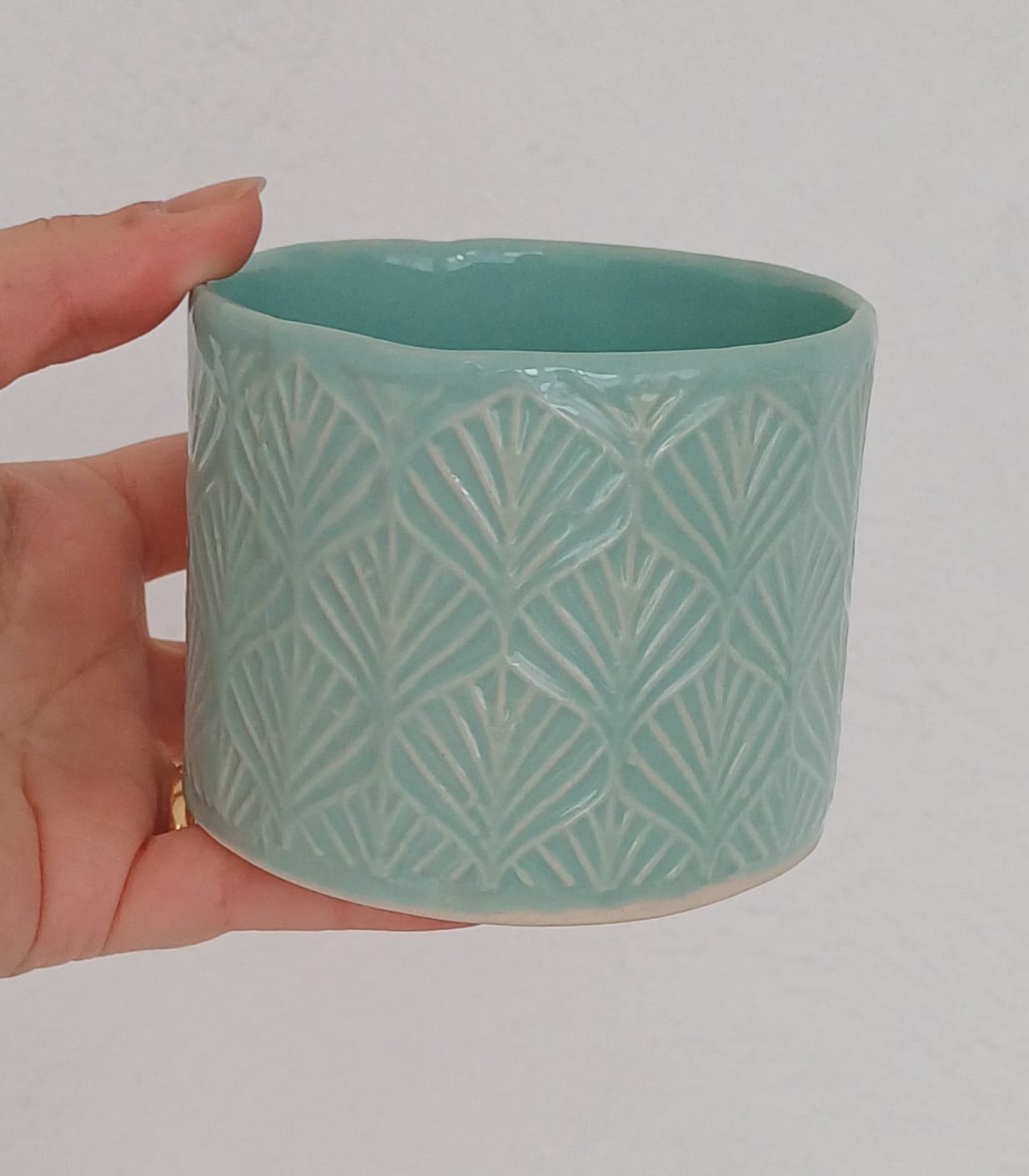 Copo Cilíndrico #3 12,00 € Desconto de %. Partilhar Cor Pormenor Vermelho Castanho Verde Água Comprar Contactar Disponível para entrega imediata e enviado em até 2 dias úteis após a encomenda. Características: 100% Feito à Mão. Material: Grés com vidrado apropriado para microondas e lava-loiça. Categoria: Utilitário. Cores: Disponível em várias cores. Altura Aprox. 7cm Diâmetro Aprox. 8,5cm
