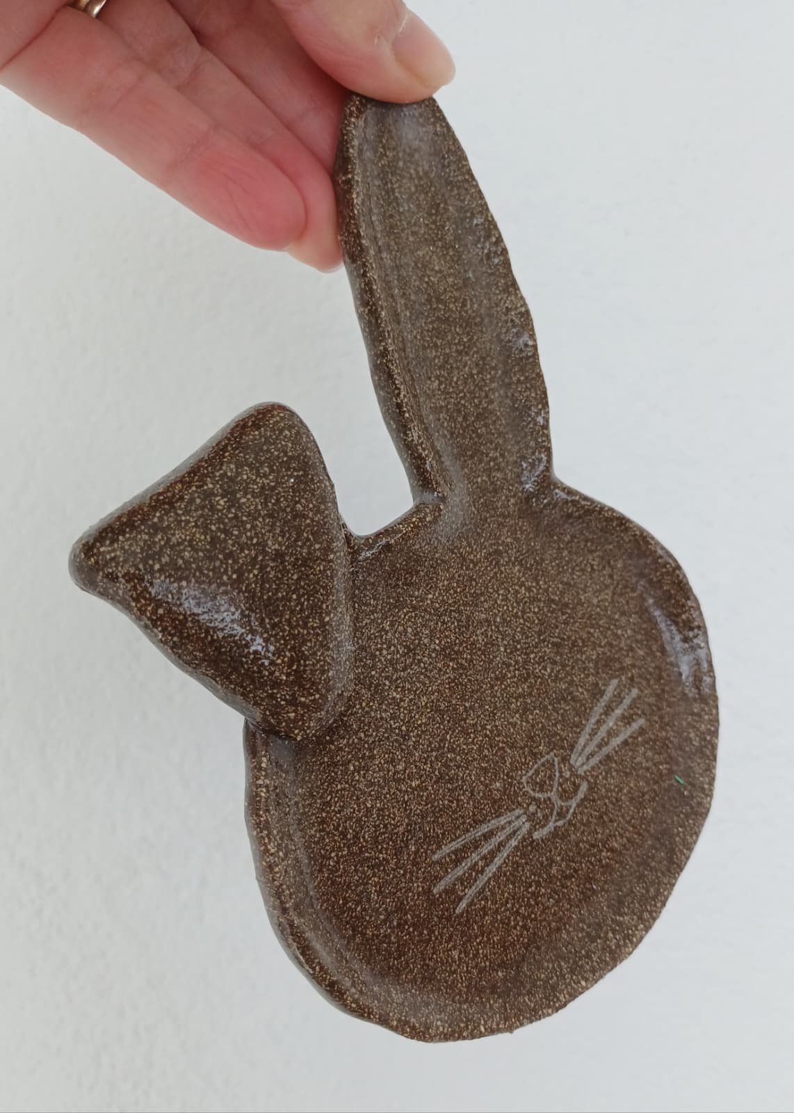 Prato Coelho Pequeno #5 15,30 € Desconto de %. Partilhar Acabamento Cara Liso Comprar Contactar Disponível para entrega imediata e enviado em até 2 dias úteis após a encomenda. Características: 100% Feito à Mão. Material: Grés com vidrado apropriado para microondas e lava-loiça. Categoria: Utilitário e/ou Decorativo. Cores: Disponível na cor do barro. Altura Aprox. 1cm Largura Aprox. 10,5cm Comprimento Aprox. 15,5cm