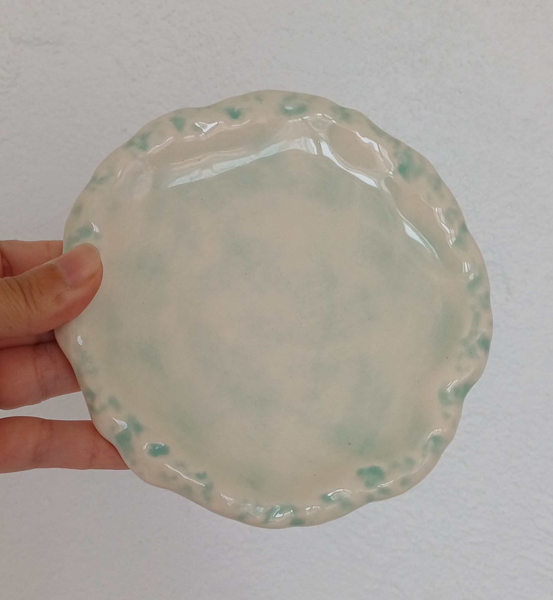 Prato Pequeno Rugoso 13,90 € Desconto de %. Partilhar Cor Verde Água Coral Comprar Contactar Disponível para entrega imediata e enviado em até 2 dias úteis após a encomenda. Características: 100% Feito à Mão. Material: Grés com vidrado apropriado para microondas e lava-loiça. Categoria: Utilitário. Cores: Disponível em verde água. Altura Aprox. 0,8cm Diâmetro Aprox. 13cm