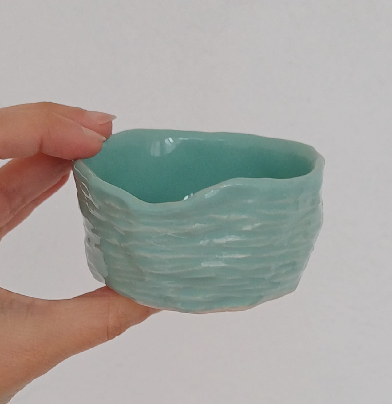 Taça Pequena #2 8,00 € 10,00 € Desconto de 20%. Partilhar Comprar Contactar Disponível para entrega imediata e enviado em até 2 dias úteis após a encomenda. Características: 100% Feito à Mão. Material: Grés com vidrado apropriado para microondas e lava-loiça. Categoria: Utilitário. Cores: Verde Água. Altura Aprox. 4cm Diâmetro Aprox. 8,5cm