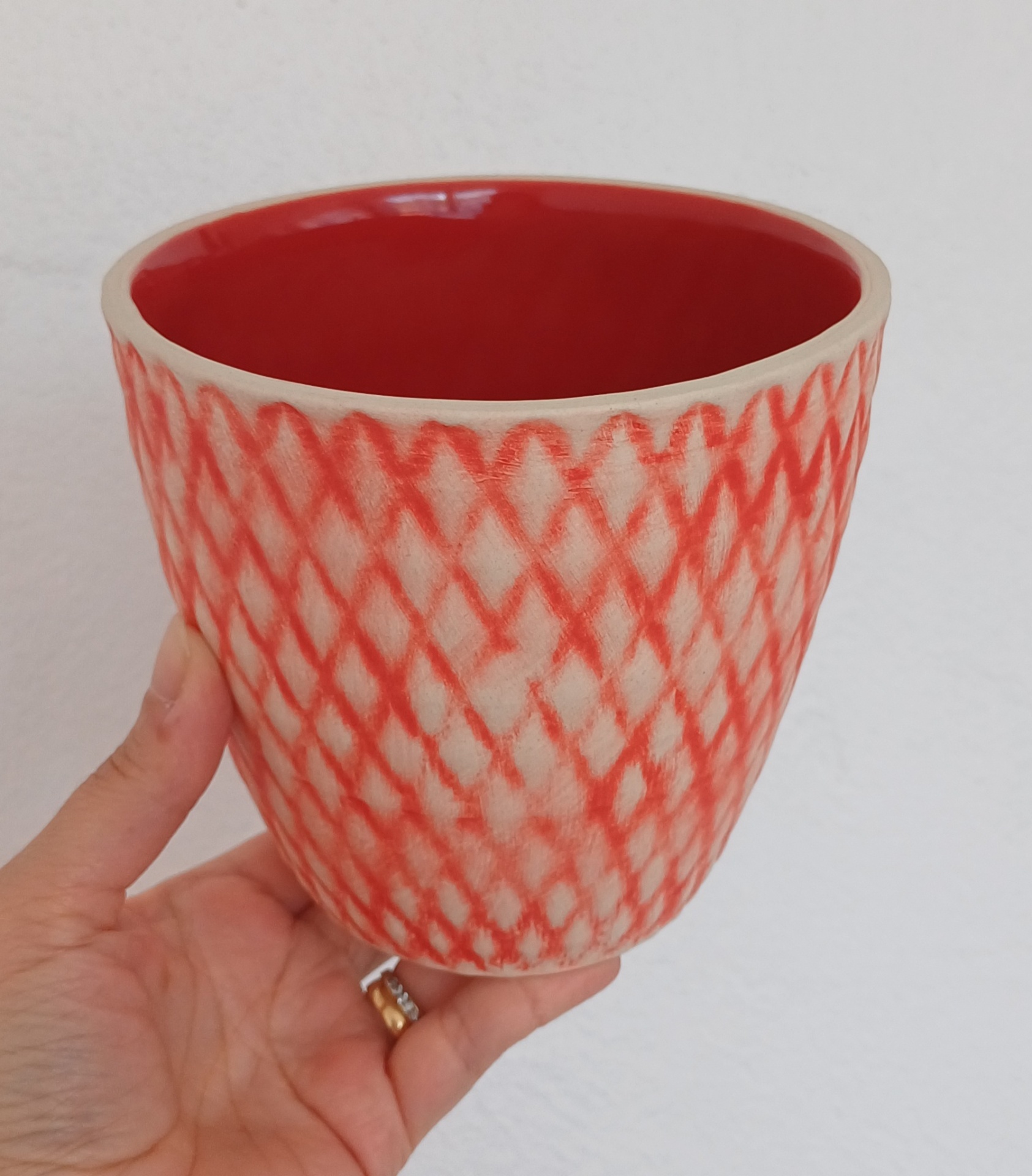 Vaso Médio #1 19,00 € Desconto de %. Partilhar Cor Vermelho Comprar Contactar Disponível para entrega imediata e enviado em até 2 dias úteis após a encomenda. Características: 100% Feito à Mão. Material: Grés com vidrado apropriado para conter água. Categoria: Decorativo. Cores: Disponível em várias cores. Altura Aprox. 11,8cm Diâmetro Aprox. 12,8cm